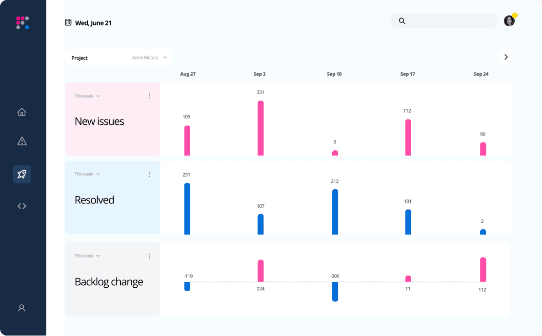 How does your current site scanning tool handle it when an issue in today’s scan was also present in last week’s scan? Chances are, it just adds the duplicate issue into your overall list. But Evinced tracks issues and components over time and automatically recognizes new, resolved, and recurring issues. So you can manage your backlog to where it’s supposed to go: down.